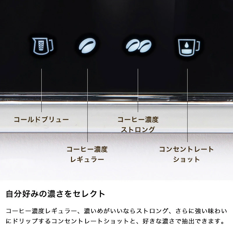 • Adjustable coffee strength, allowing you to choose your preferred concentration