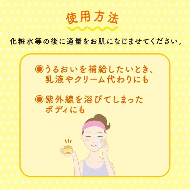 • How to Use: After toner and serum, apply an appropriate amount to the entire face or dry areas of the body