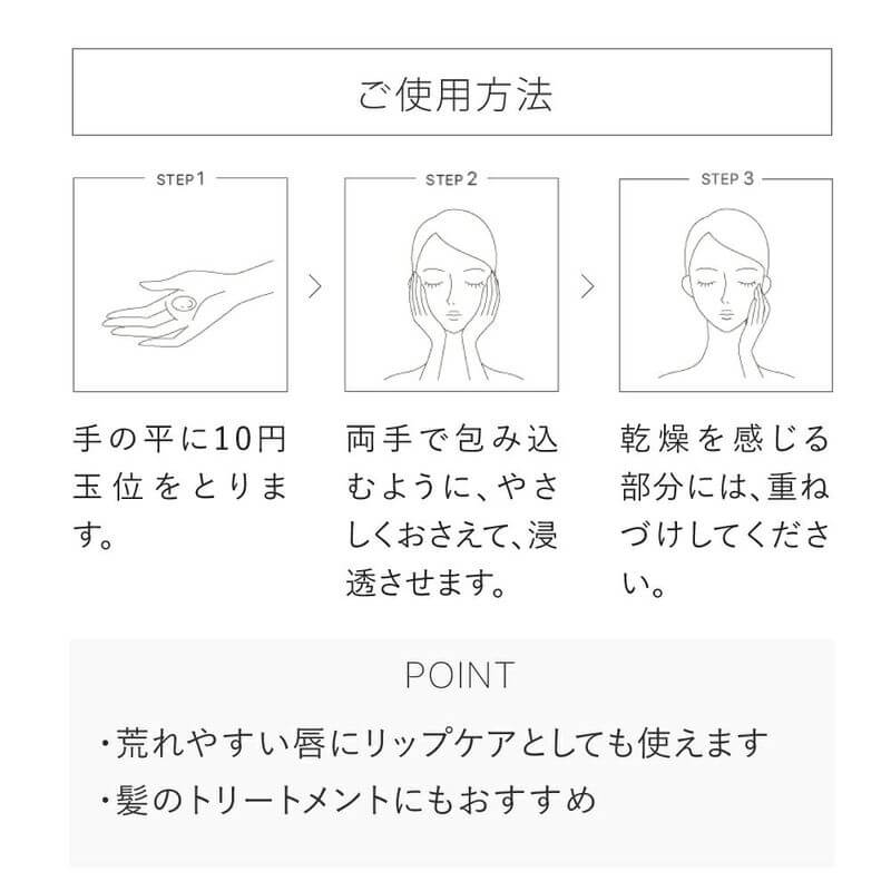 • Dispense a suitable amount (about the size of a dime) onto your palm and gently press it into your skin after cleansing