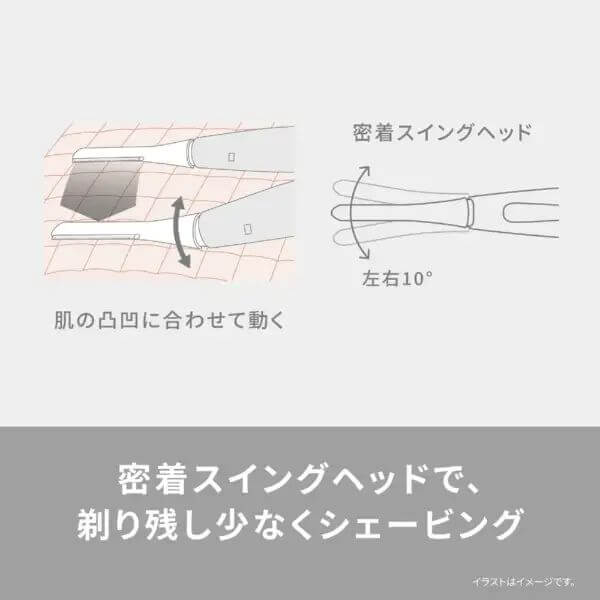 • Swinging head moves along the contours of the skin for closer contact and fewer missed spots
