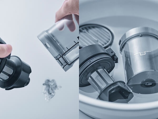Washable Dustbin: Easy to remove and clean; must air dry for 24 hours after washing.