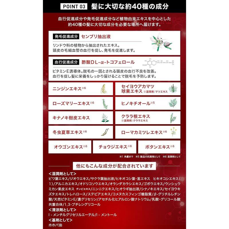 • Contains about 40 carefully selected botanical and hair-supporting ingredients such as ginseng, licorice, carrot extract, and menthol