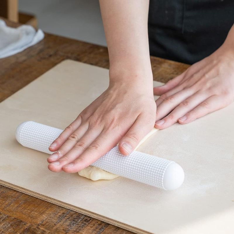 • Textured surface helps evenly release gas from dough while rolling