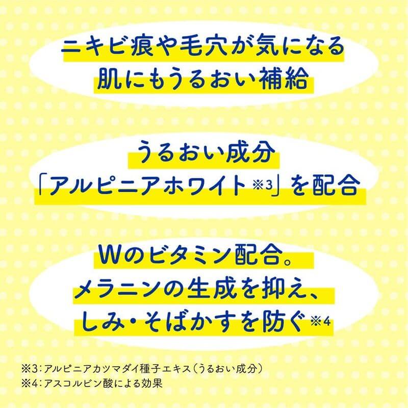 • 含保濕成分高山薑籽萃取(Alpinia White),能潤澤肌膚、改善痘印