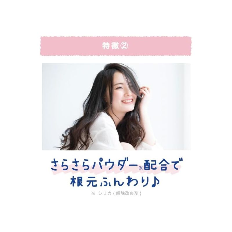 • 添加細緻吸油粉末(矽石),使髮根蓬鬆不扁塌
