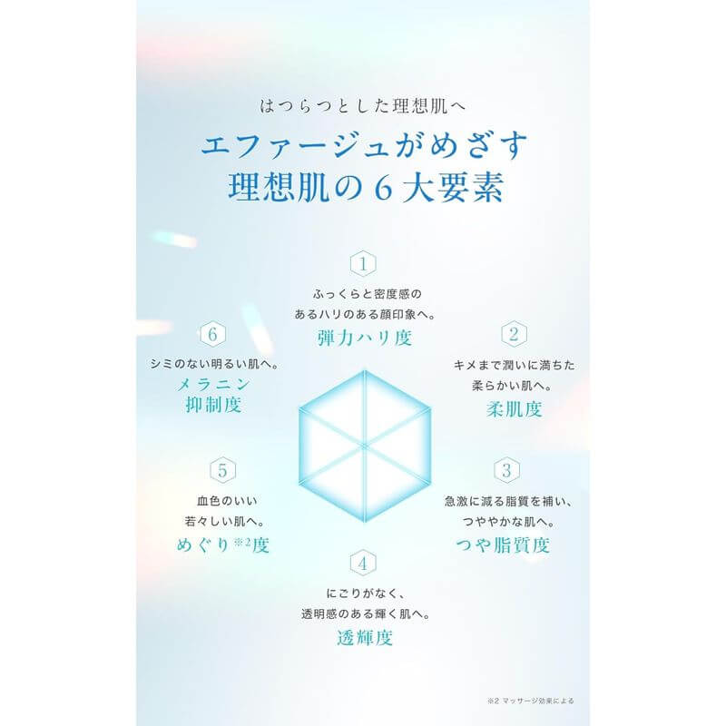 • 以「透明肌清澈複合精華」調理色調不均,使肌膚更明亮