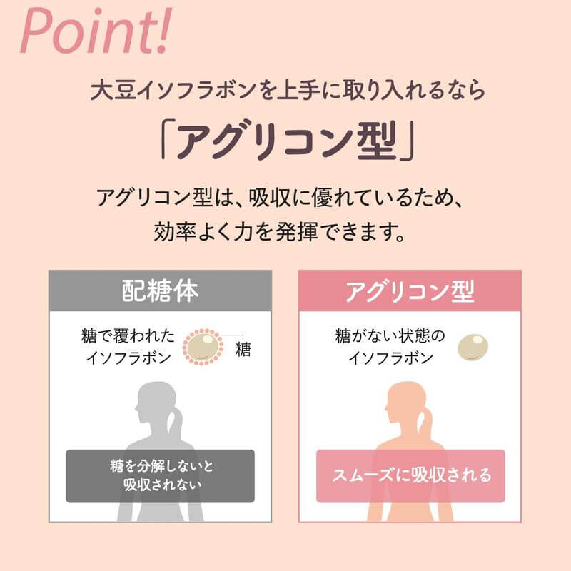 • 採用吸收率佳的大豆異黃酮游離型(Aglycone型),搭配植物性乳酸菌與寡糖,從體內調整體質