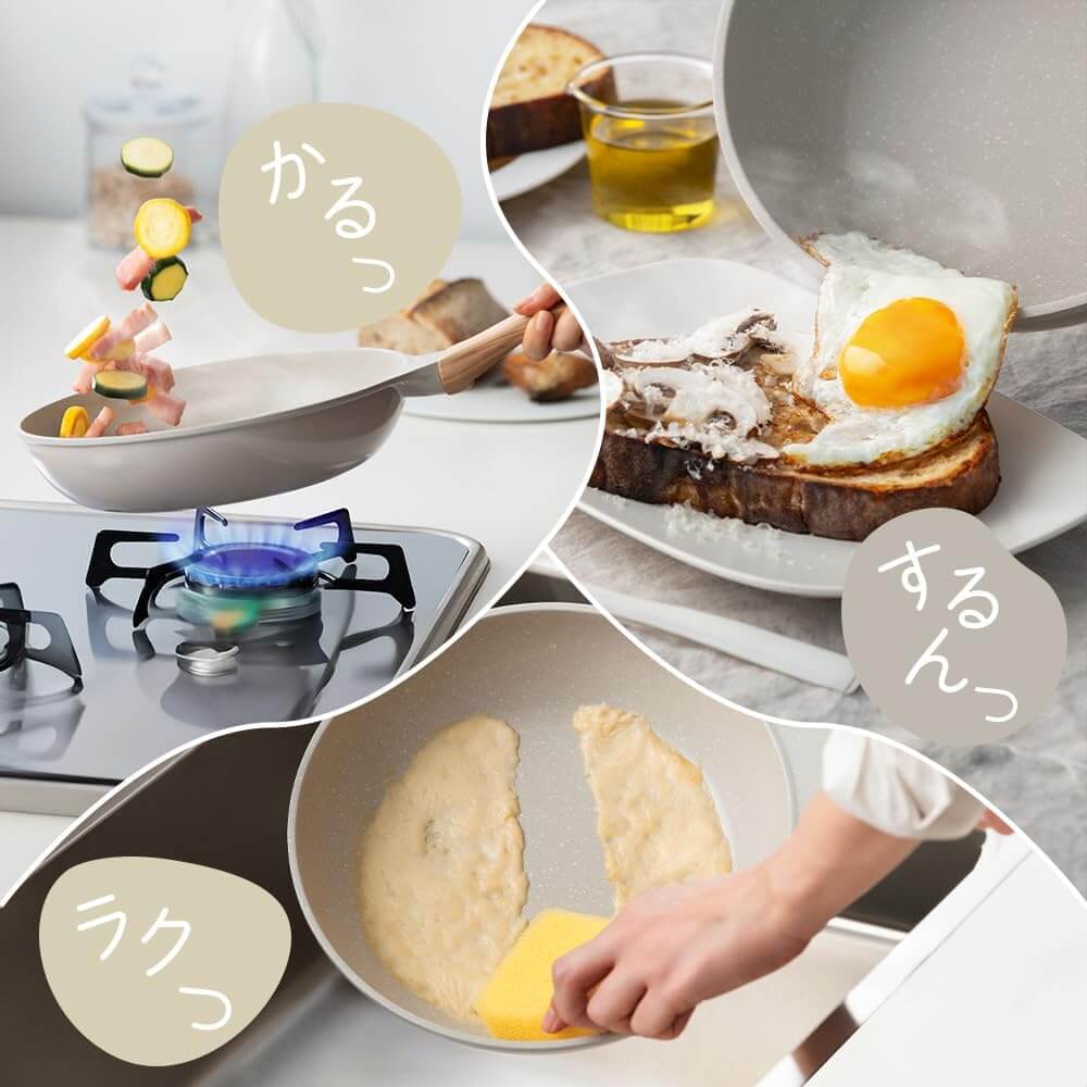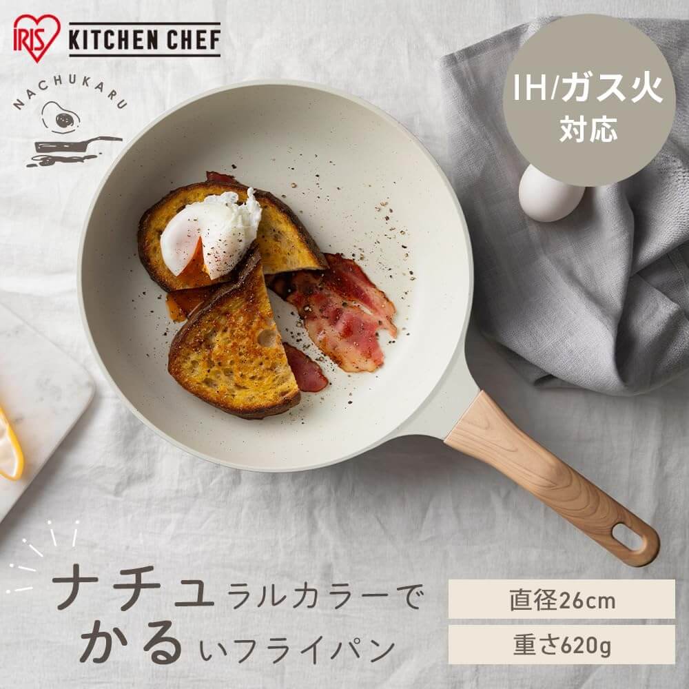 IRIS OHYAMA 不沾平底鍋, 木紋手柄, IH/明火兩用