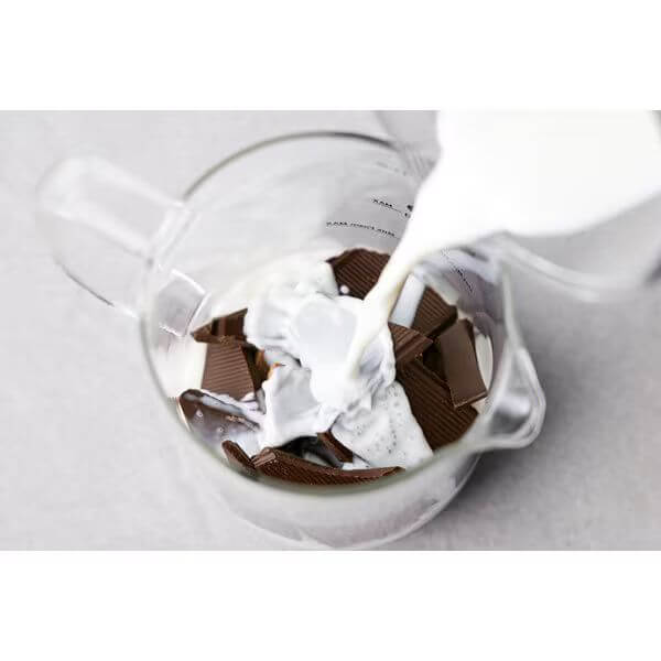 加入牛奶與巧克力即可自動加熱與攪拌,約68℃完成